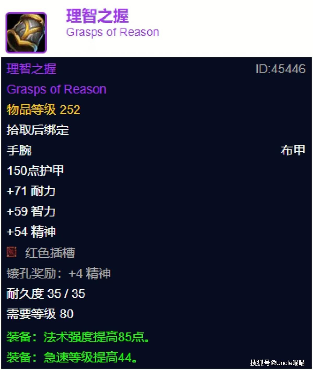 拆解者的理智之握,绝对是会让所有法系输出散失理智迷失在奥杜尔的高端尖货,全面的智耐精属性完美的衔接上了一个红色插槽,极致的急速等级拔高下是恐怖如斯的85点法强,理智,就这样究极体的形态阶段性的最强的护腕,你让我们大法神如何理智,不过有一说一好像这个BOSS的困难模式还是有点挑战的,心碎欲绝这个成就基本上真的让绝大多数团长心碎欲绝直接放弃了,就问问屏幕前的您有没有这样的实力见到并拿下它呢?