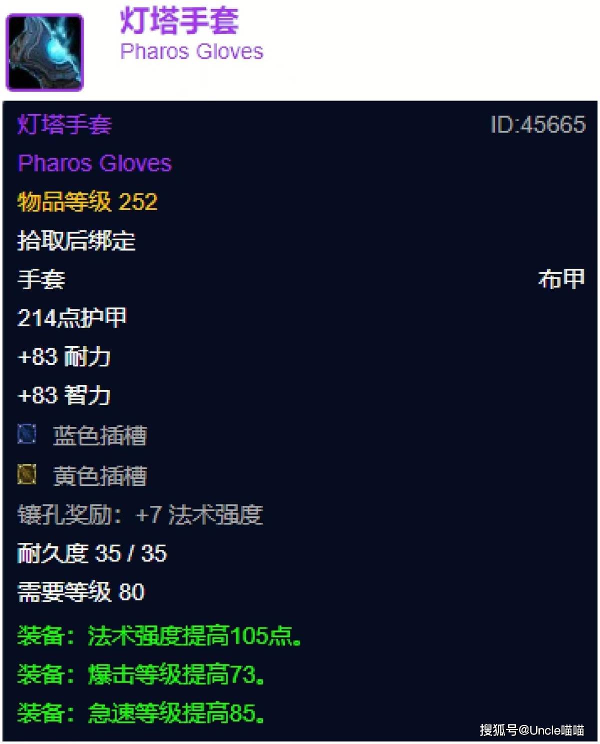 25人观星的此款灯塔手套,喵叔可以很负责任的说,您现在拿了,到了三阶段也是绝对霸榜准毕业的手部极品散件,对比十字军试炼258装等的亡者之触裹手根本是旗鼓相当的存在,甚至喵叔个人感觉隐隐中还强势上一丢丢,虽然法强低了一点,但是急速和爆击都比后者要高,所以单从这一点来看,灯塔手套还是要更好的。不过这东西就更加难以拿下了,且不说多么恐怖如斯的金币区间,就单纯是这个BOSS不是你想见就能邂逅的,能拿到的必须是实力与金币双持在线的大佬!