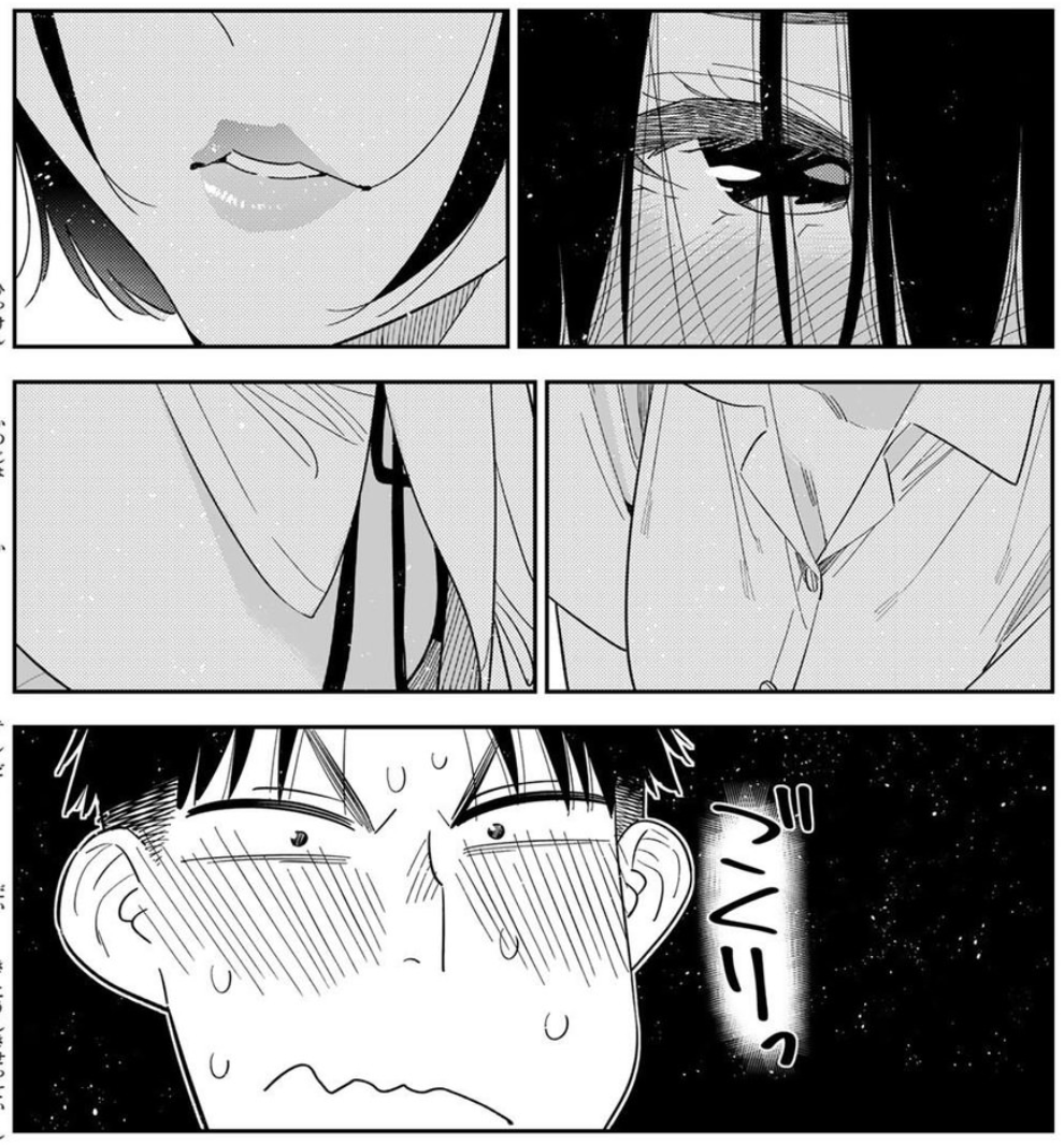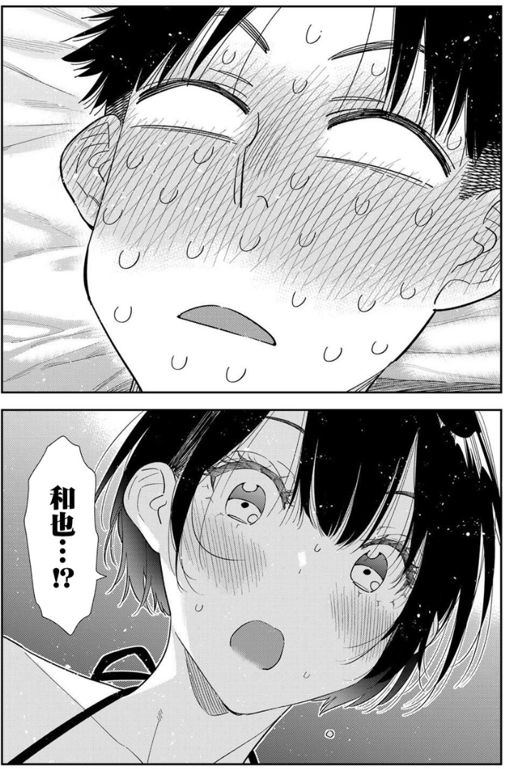 如果没记错的话上一次吐槽《租借女友》的时候说到,瑠夏穿着比基尼要跟和也开一局并开始用和也的档把练习挂挡那段对吧?接下来的404话的内容概括起来就是认为当小三也没关系的瑠夏,直接把和也的爪子塞进了自己的比基尼里想要生米煮成熟饭,结果没几下之后,和也爆浆了……