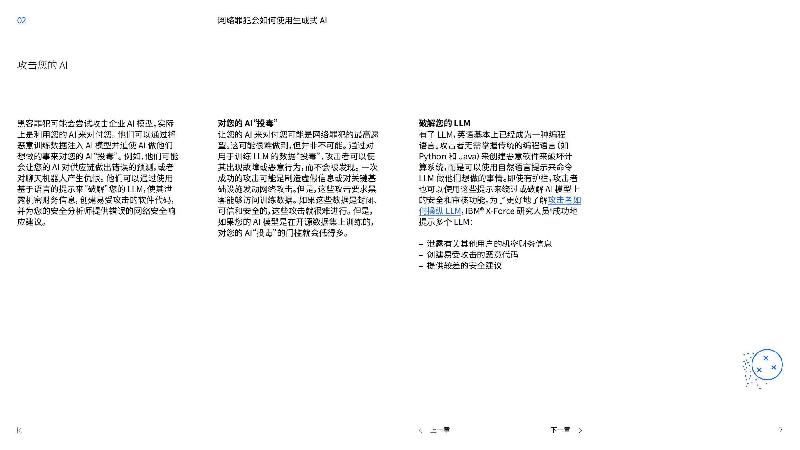 - AI设计的网络钓鱼:网络犯罪分子可利用大型语言模型更快地进行更多网络钓鱼攻击,如创建逼真的网络钓鱼电子邮件,增加用户错误点击的可能性,还可进行目标式网络钓鱼,模仿受害者语言风格。