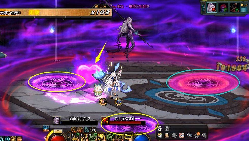 ③前往高亮红紫色(下图蓝圈)的魔法阵中,等待读条结束