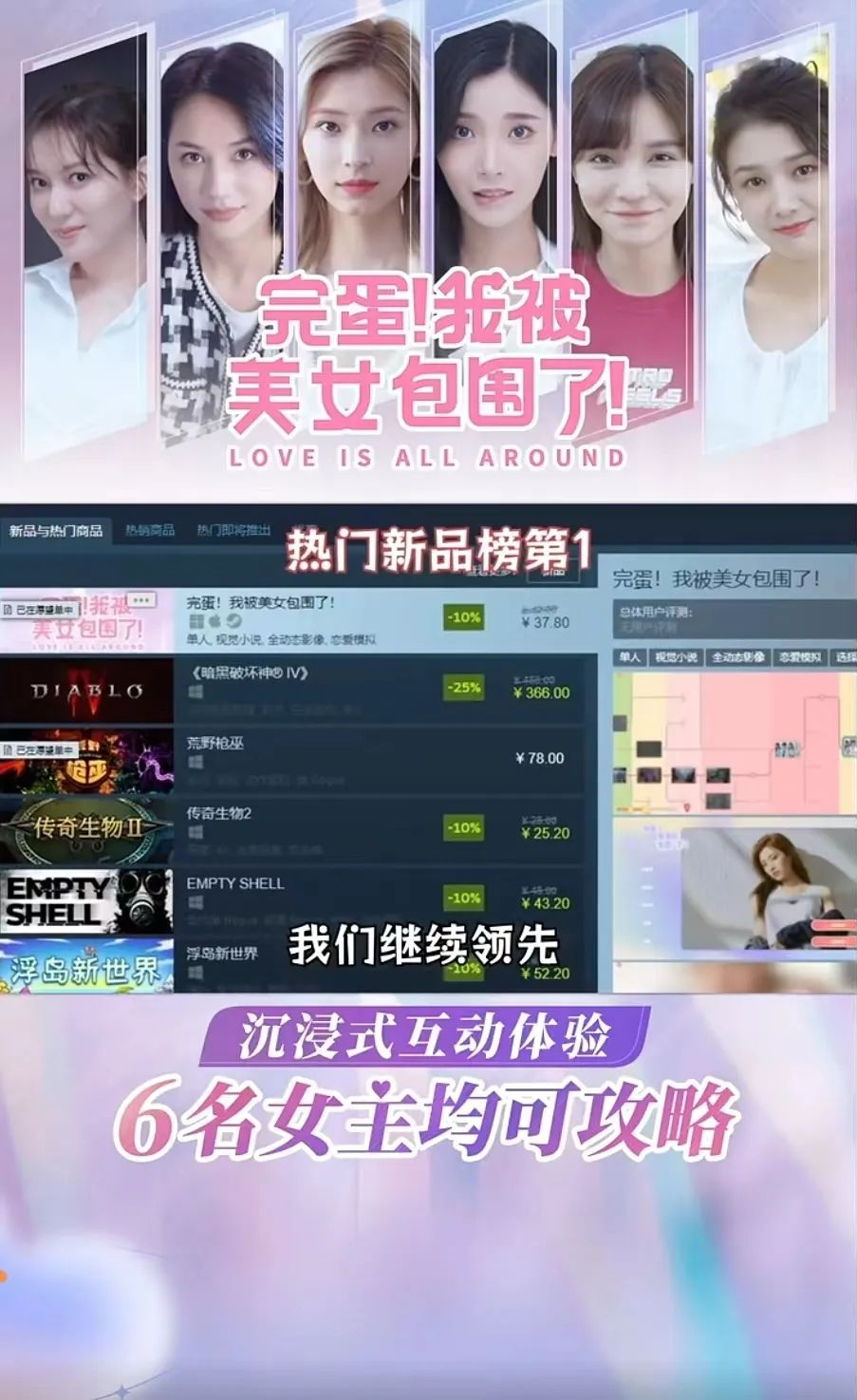 如果你对于游戏圈一直关注的话,你就会发现,近期一款名叫《完蛋!我被美女包围了!》正在攻陷了一大波男大学生,而且该游戏仅上线一天就霸占Steam国区热销榜第一。