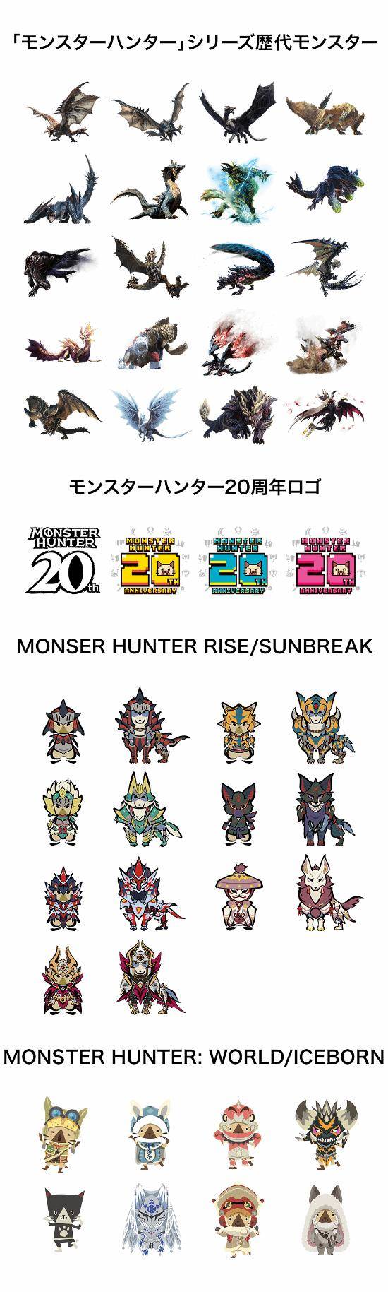 此次合作提供了46种不同的印章设计,涵盖了历代《怪物猎人》游戏中的标志性元素。包括20种系列中的主要怪物设计,如雄火龙和雷狼龙等经典形象。此外,还有22种艾露猫和猎犬的可爱设计,以及4个《怪物猎人》20周年纪念标志。这些丰富的设计选项让粉丝们能够充分发挥创意,打造属于自己的独特纪念品。
