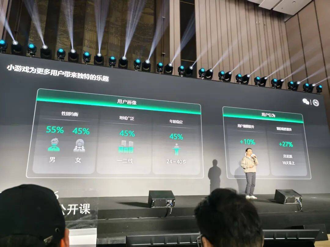 看完了开发者们取得的成绩,我们再来看一下小游戏大盘的基本情况。当前,微信小游戏用户规模稳定在五个亿以上,用户画像方面和24年保持了相对的稳定,这点就不过多的展开了。同时,我们也观察到了一些很有意思的现象,比如详细的用户行为有一个显著的提升,比如DAU有10%的一个增长,月活十天以上的用户的高留存用户,相比24年同比增长了27%,在闲暇的时候玩一玩自己喜欢的小游戏,已经成为了很多用户的习惯。