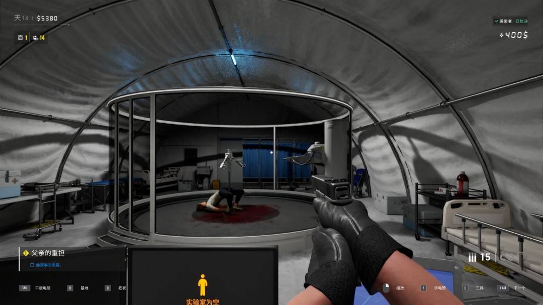 在拿到“科研点数”和“利润”后,我们就能升级“设施”和“工具”,降低误诊率,理论上在灾情中拯救更多的难民。而游戏中间,还会穿插一些类似塔防模拟的“射击”小游戏,这部分也需要资金升级,才能保证咱的营地,不至于变成丧尸大军的自助餐厅。