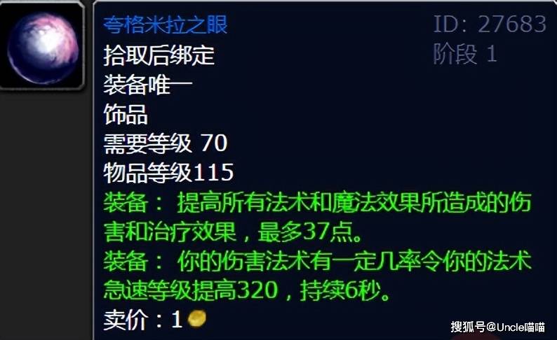 对于奴隶围栏尾王的夸格米拉之眼,喵叔我想是根本不需要多加阐述的极品了,保值程度必须恐怖如斯直戳天花板,排骨点亦或者自己脸黑的玩家,用到黑暗神殿绝对无压力,可以说是TBC版本没有个法系DPS的成人礼级饰品,值得期待!