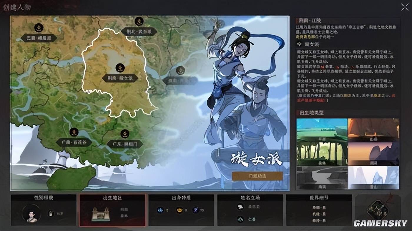 而现在,如果你从头开始试玩《太吾绘卷》,便会发现它在某些层面极大的变化:简单来说,它的卖相更好了。单是开局的门派选择,便在美术资源堆叠下产生了质变:个中人物,或英武,或出尘,或邪气,或动人,在这种种不同间,作为一款游戏的“面子”已是十足。
