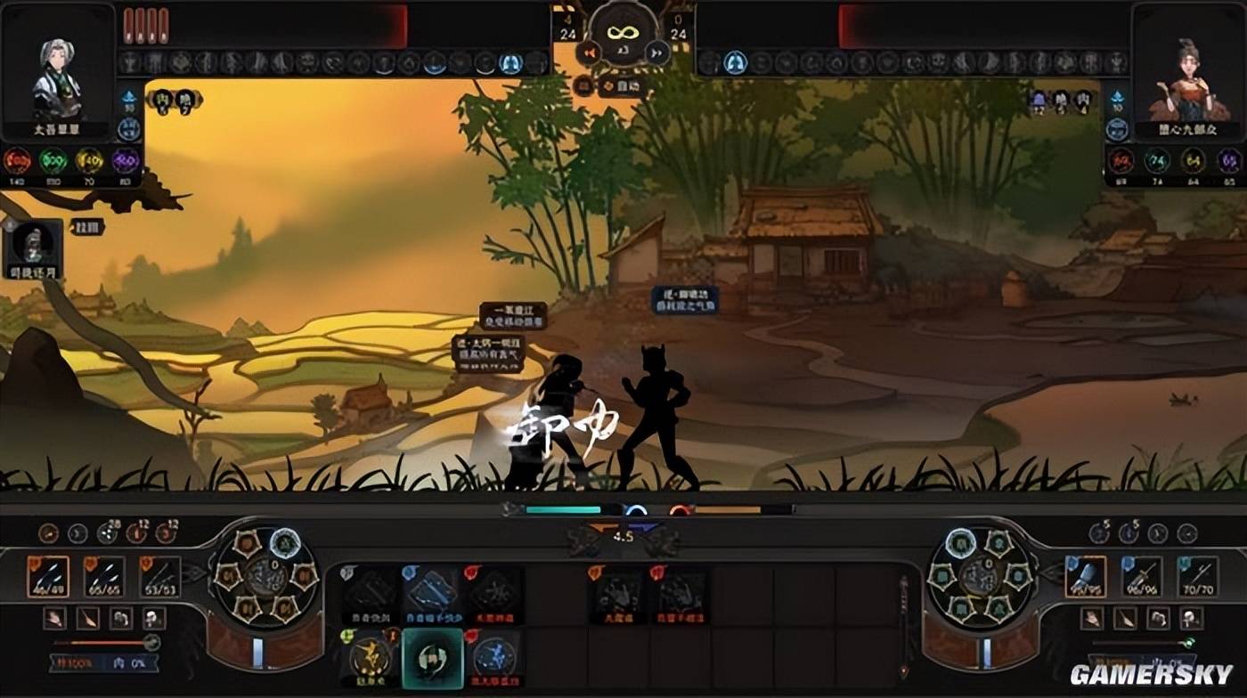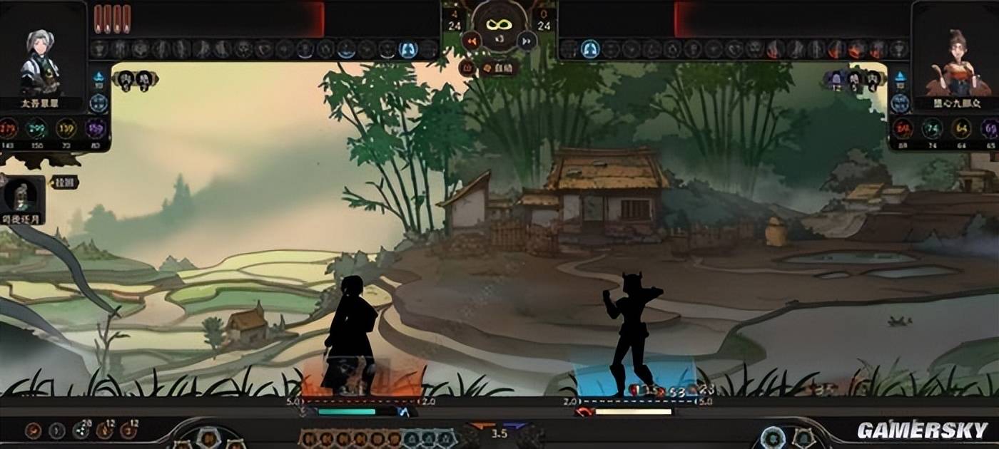 美术资产的迭代,是让我惊讶的部分。且不说官方在现在版本中,已在原野,溪谷,山岳,桃源这些地形上,皆设立了不同的背景映射。如今战斗时天气的晴雨变化,光影亮度的更替,都在本次试玩中,得到了更加细腻的呈现。眼前是一招一式打斗动画都经过迭代的写意对战,远方是朝晖夕阴气象万千的梯田原野,在这一场场战斗中,中式美学的视觉享受便由此呈现开来。