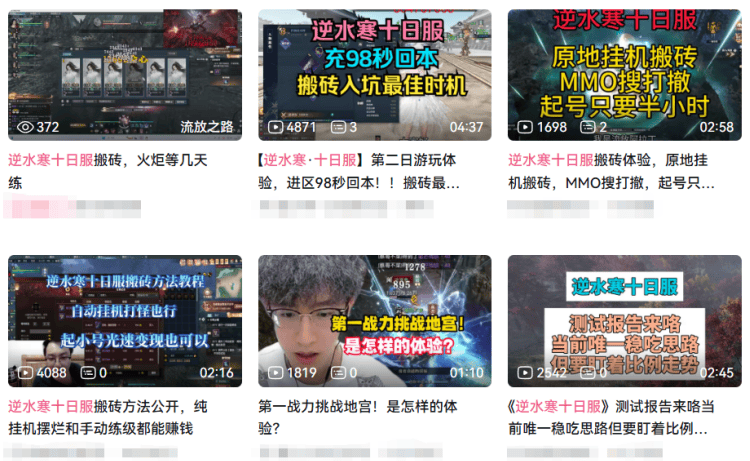 对于这部分没有游戏经验的用户来说,他们正需要像《传奇》、像《逆水寒》十日服这样简单粗暴能搬砖的网游。