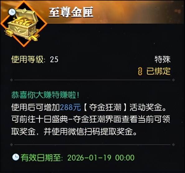在地宫刷宝,一是概率出“至尊金匣”,可以领现金;