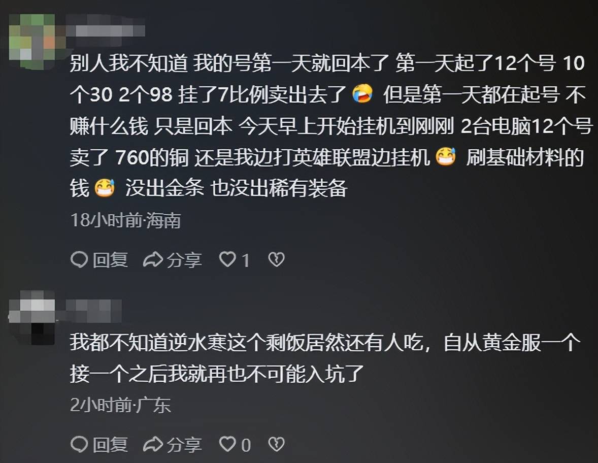 但不置可否的是,在送一单拼好饭只能含泪赚3块钱的大环境下,以游戏搬砖来谋生的“玩家”比例正在提升。