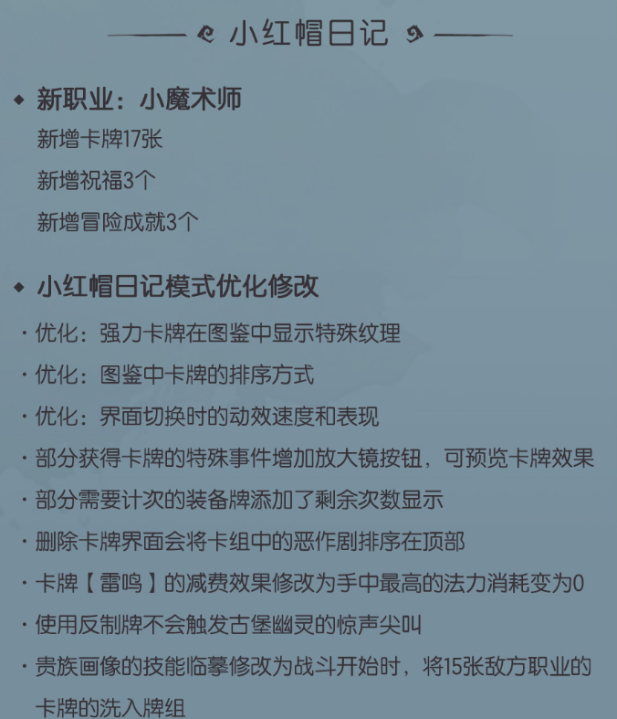PVP模式也在《月圆之夜》本次更新中进行了平衡性调整,譬如幽灵这个种族在新赛季当中制霸前期,在这次补丁之中被稍微削弱了部分的前期能力,而星裔在新补丁之后也增强了一些后期能力,以至于现在不像之前那么难以锁血。当然一些卡的调整也让英雄的强度产生了变化,所以新版本的上分思路这下可要调整一番了。