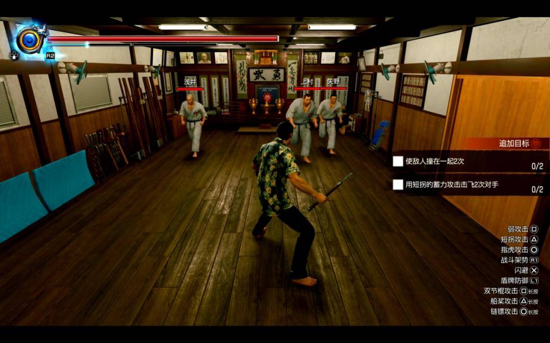 据试玩Demo透露出的信息,在来到琉球后,桐生一马由于某种机缘巧合,结识了当地一个古武术道馆的馆长,并学会了运用团牌、镰刀、双截棍等武器进行攻击的“琉球风格”。与“特工风格”过于明显的对群倾向,以及“海盗风格”跳出游戏底层逻辑的逆天强度都不同的是,这次的“琉球风格”,更偏向于对玩家在战局中可能遇到的种种情况,提供行之有效且一目了然的应对方案——比如,有些敌人的AI你一开始没摸透,不知道怎么规避对方的连续击打,然后找时机反打一套,那么你就可以站在原地,靠团牌的“精准防御”把游戏玩成“音游打铁”。