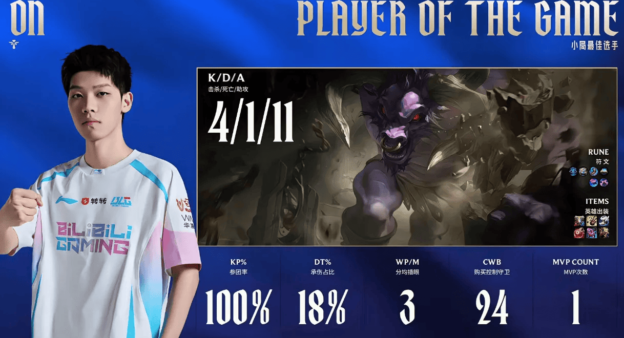 但从第二局开始,BLG又找回自己熟悉的节奏,围绕下路来打,直接帮VIPER打出优势,厄斐琉斯全场10/2/3的数据帮助队伍扳平比分。说真,第三局比赛要不是WBG自己失误太多,频频给机会,BLG极有可能1-2输掉这个BO3。当然,从侧面来看BLG这支队伍的韧性确实很强,BLG就应该给VIPER选大核AD,不然真发挥不出他的最大实力。相信丹尼回去复盘后就能看出,这赛季就是下路的版本。