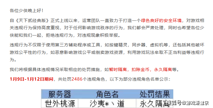 在高收益的驱使下,难免也会有脚本工作室瞅准商机,用科技手段扰乱游戏环境平衡,而《天下贰·经典版》官方也早就做好了积极应对的措施。比如他们在网易内部找来了专业的技术部门合作,严格对脚本行为进行监测,针对异常批量起号的行为进行智能识别与画像圈定。而公测才几天,官方就公告已对违规账号进行了封禁等处理,足以见得官方对守护玩家权益的决心。
