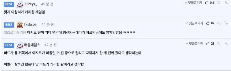 虽然巴德真的玩得很好,但这局比起巴德真的是Doran阿卡丽carry了比赛,在比赛已经一边倒的情况下,巴德开始打出了高光操作。