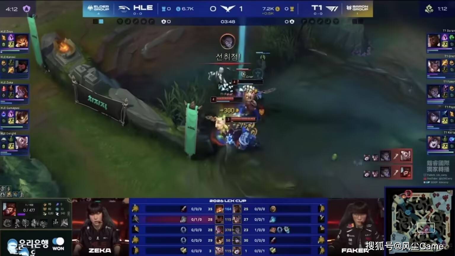 LCK赛区第一赛段小组对抗赛,上一个比赛日,迎来了焦点之战,世界冠军战队T1,交手银河战舰HLE,这两队阵容调整之后,在K杯的时候,就在决赛遇到过,当时是打满了5局才分出胜负,原本以为经过休赛期的沉淀、磨合,两队的战力,都会有明显提升,结果没想到HLE一拉到底。
