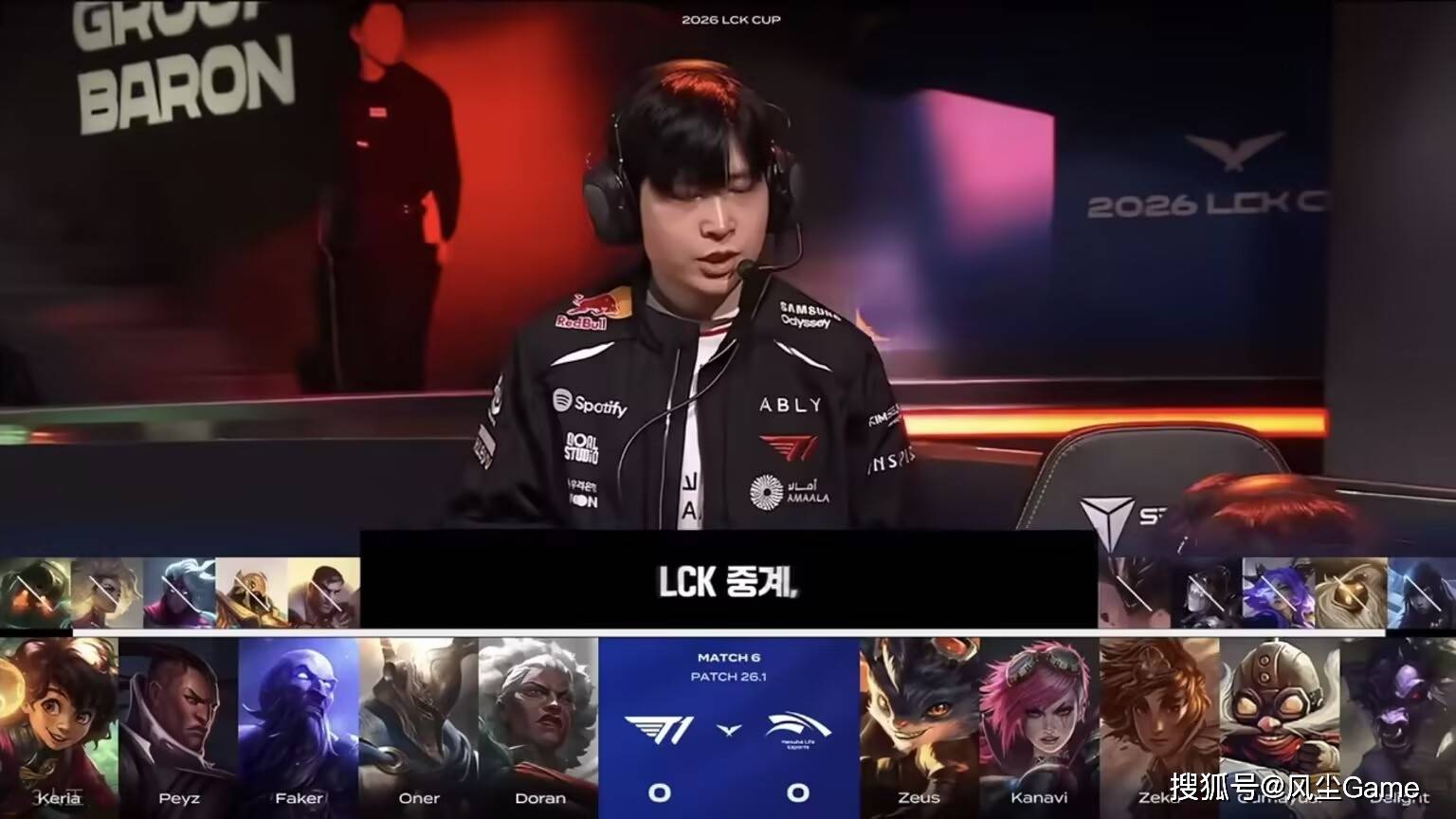 第一把刚上来,T1就开始搞科研,Tom放着烈娜塔、娜美这些对线强的英雄不用,给Keria整了一手丁真配卢锡安,虽然对线小压了几刀,但团战一点用都没有,加上多兰也被对位突破,Faker一个人镇不住场子,T1第一把直接输了,第二把开始,T1终于认真起来了,开始拿偏常规的阵容。