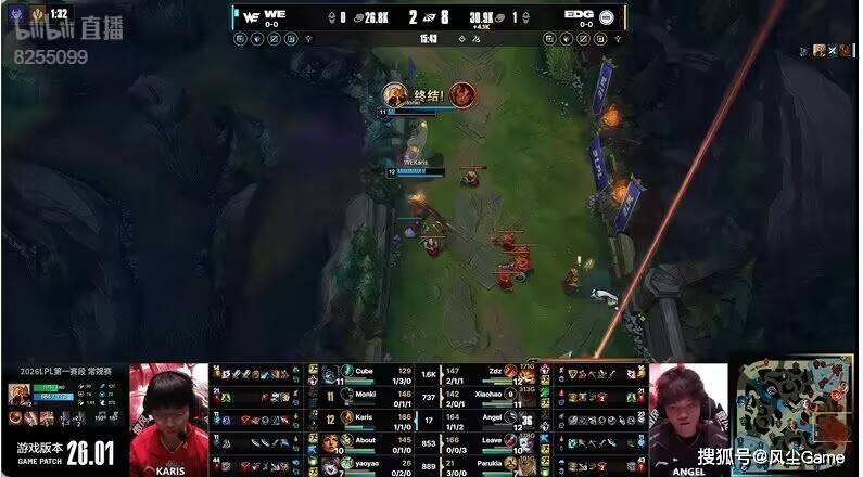 第二把EDG优势很大,15分钟领先4K经济,大家都觉得稳了的时候,团战突然就送了波大的,对比之下,换了双人组的WE,虽然对线一般,但打团战是真有说法,去年大家都在吹的Leave回老东家之后,又有点“拟人”了,各种给机会,频繁暴毙,这种弱弱对决,唯一的好处就只剩下饭了。