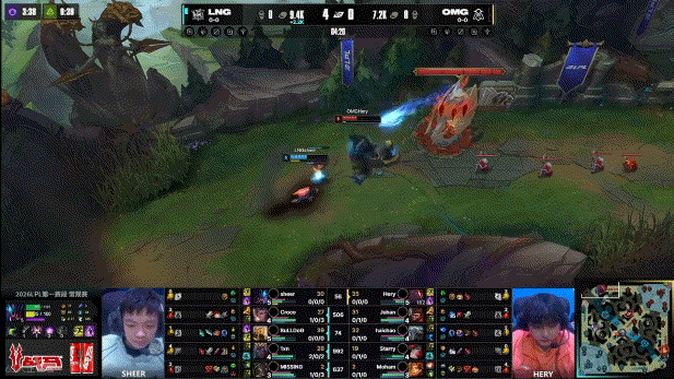这场比赛也是无人在意,热度非常低,不过李宁上单Sheer,贡献的一个名场面,给这场比赛增加了不少乐趣,第二把小孩哥玩挖掘机,对线Hery的塞恩,打到4分钟的时候,Sheer想干扰塞恩补兵,结果一个E挖到塔下了,被防御塔打了之后,Sheer闪现跑路,刚走到野区就被打野逮捕了。