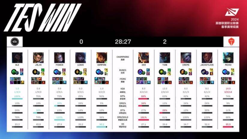 然后是第二局,虽然EDG开局抓出了JKL的闪现,但是TES上路拿下一塔,而且在后续jiejie越塔失败,小奶油赶下来打出0换2,这导致EDG彻底陷入劣势,两局针对下路效果不佳,最终输掉了比赛。