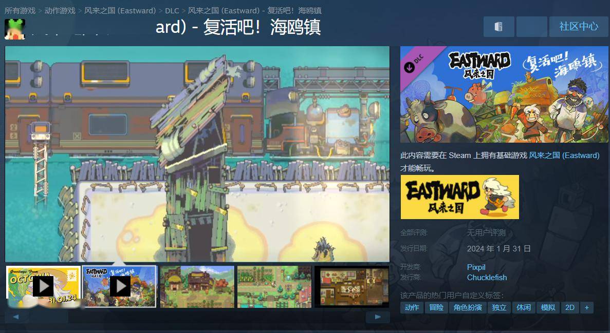 DLC《复活吧!海鸥镇》将于1月31日在Steam、WeGame、蒸汽平台和Nintendo Switch同步发售,原价22元人民币/33港元/5.99美元,首发将会开启限时特惠,如果你想要感受末世历险和田园生活的双重体验,欢迎将游戏加入Steam愿望单。
