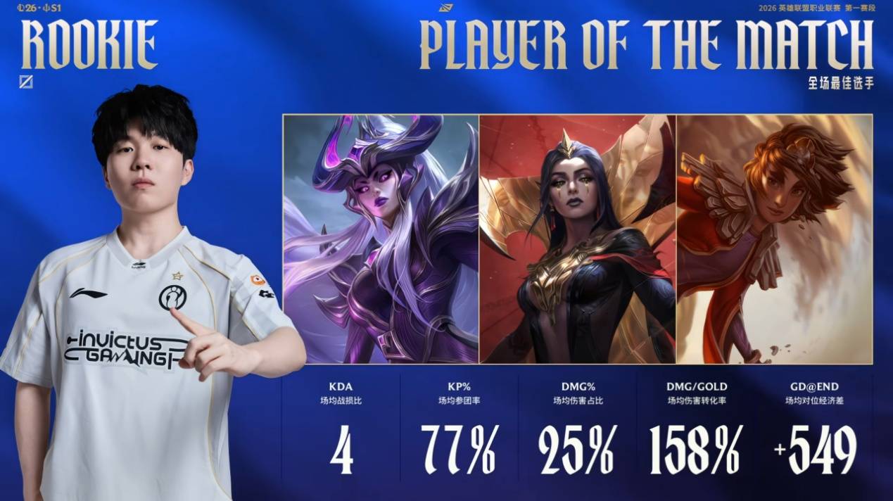 两场比赛结束之后,获得全场MVP的选手都是中单,Knight和Rookie也成为了昨天比赛的主角,当然在两个选手之外,队友的发挥也不应该被忽视,Bin三局对线打圣枪哥优势都很大,他的状态复苏对BLG来说还是相当重要的。