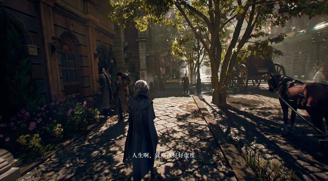 比如说游戏投入了大量的资源去实现24小时实时变化光照,一方面进一步提升了画面的质感,同时也是在服务于整座城市的生活化叙事:教堂广场早上在举办晨祷,中午做弥撒;工业区的工人早早上工,中午只吃点黑面包和菜汤糊弄;白天阳光猛烈,岁月静好,夜里光影绰绰,神秘潜伏。