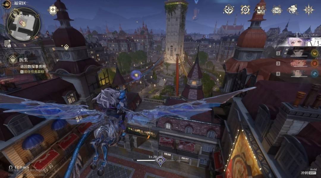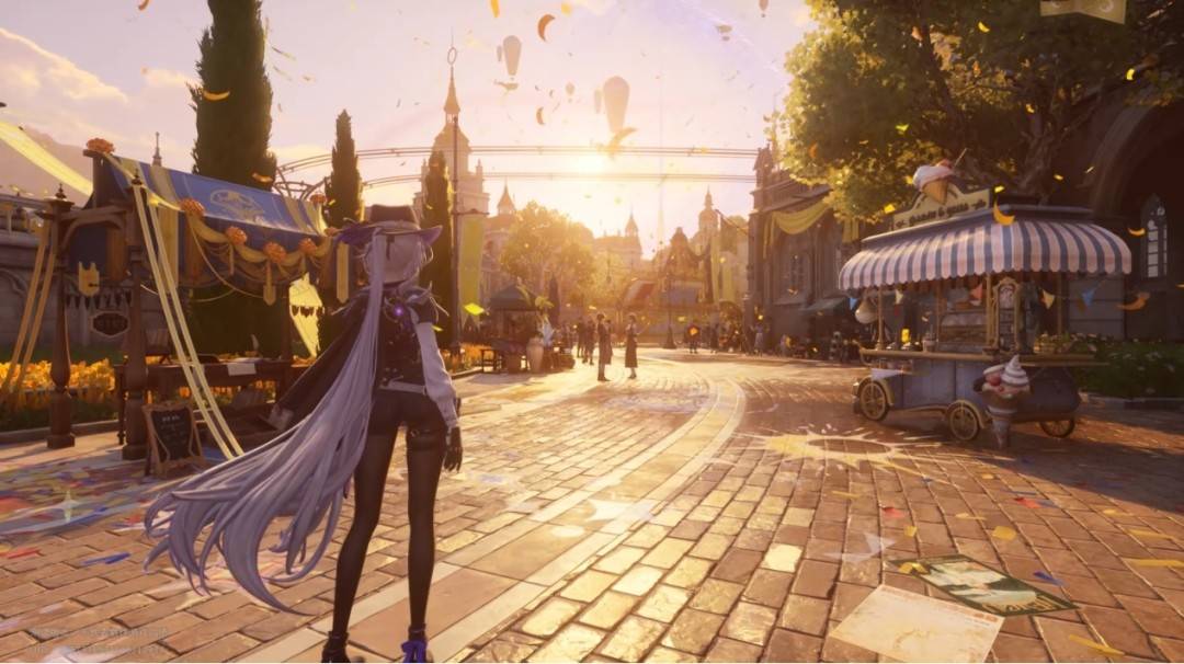 这在一定程度上受益于本作独特的世界观风格——一座带有典型维多利亚与工业时代特征,但又具有某些幻想色彩的欧洲城市。这是一种同类二游从未尝试过的模式:不再继续执着于庞大开放的“荒野”,取而代之的是一座具有箱庭质感的欧洲城市。在这里,你找不到一望无边的山坡和需要徒手攀爬的巨大岩壁,街道、人群、繁华无用的建筑结构,为这座城市带来了错综复杂的立体感。