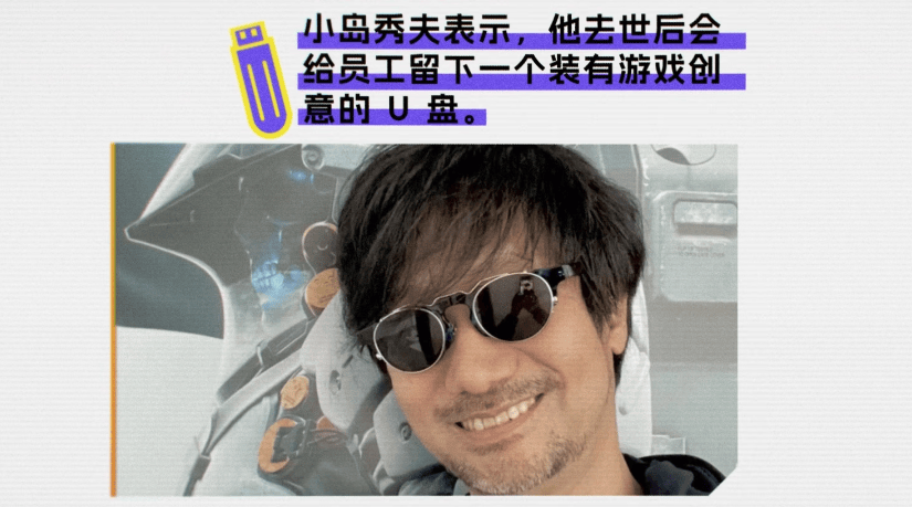 去年,小岛秀夫在接受 VGC 采访时曾表示:他给工作室员工留下了一个 “ 装满创意 ” 的 U 盘,就像诸葛亮的三个锦囊,连他自己都调侃到,有点像遗嘱。