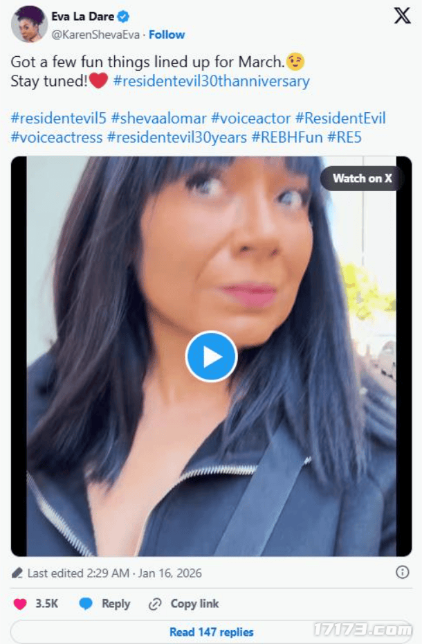 她在附带的视频中进一步暗示:“今年3月会有几个惊喜”,并呼吁粉丝“保持关注,拭目以待”。此言一出,迅速点燃社区对《生化危机5》重制版的猜测热潮。
