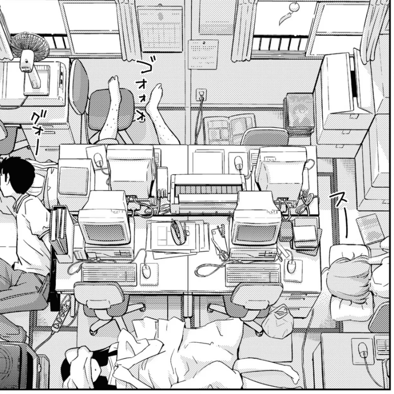 在千禧年前,这种“黑心”的开发模式在美少女游戏开发者中相当常见(出自漫画《16bit的感动》)