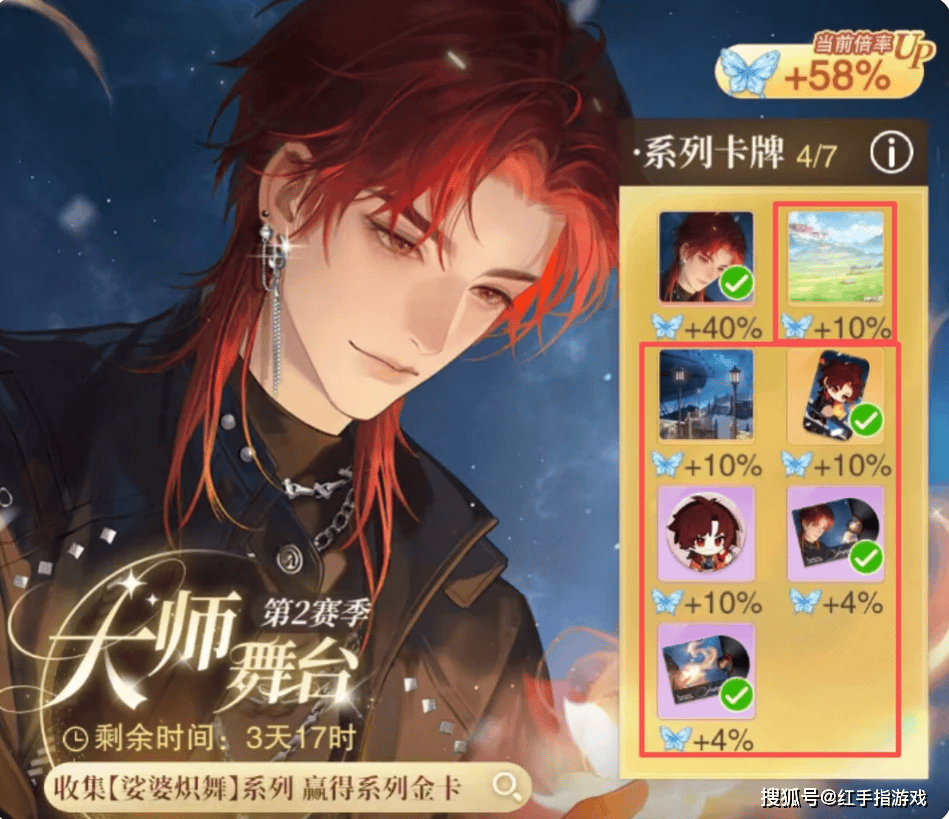 收集当期赛季系列卡中橙色品质及以下品质卡牌满 6 张,即可直接领取该系列的 SSR 卡一张及大量体力奖励。
