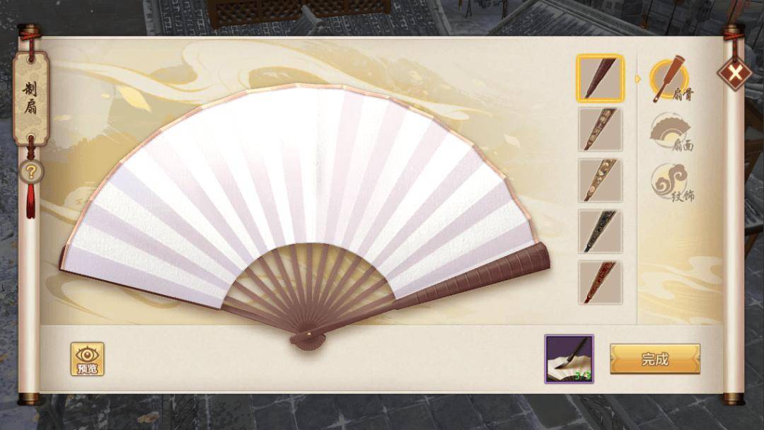在制作过程中还可以随时进入预览界面,欣赏完成后的整体持扇效果。调整满意后,使用3个丹青引就能激活专属于你的百变外观(有效期5天)!丹青引可通过参与新春活动:烟火贺新年、暖谷沐春、绘福迎吉祥3个活动获取。