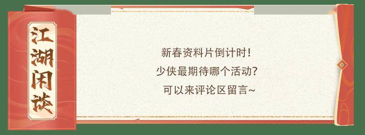 除了已经揭晓的精彩内容之外,新春版本中还藏着不少精心准备的惊喜,正等待与各位少侠相遇。今天,就跟着老赵一起瞧瞧今天的爆料吧!