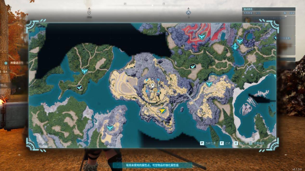 2.据点的资源有效采集范围是半径35米左右,我们可以打开地图,在想建据点的地方设置一个标记,再看看自己与标记的距离数字即可精准测量。前期的据点可以定在有大量金矿的地方(如下图,在【破败教会】附近)。