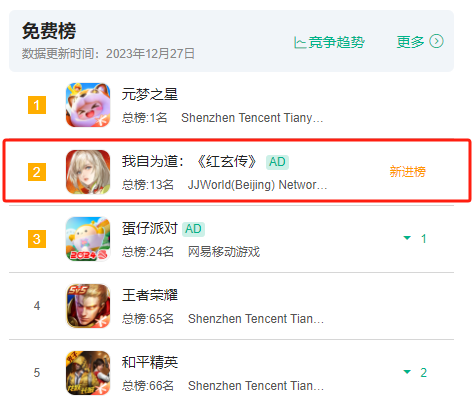 《红玄传:我自为道》由竞技世界推出,采取的是国风经典的修仙题材结合放置玩法与RPG要素,上线当日即拿下App Store畅销榜TOP2。