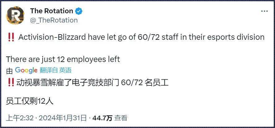 动视暴雪电子竞技业务前高级经理 Scott Parkin 也证实,他的团队今早从《使命召唤》波士顿特锦赛归来后就被解雇了。