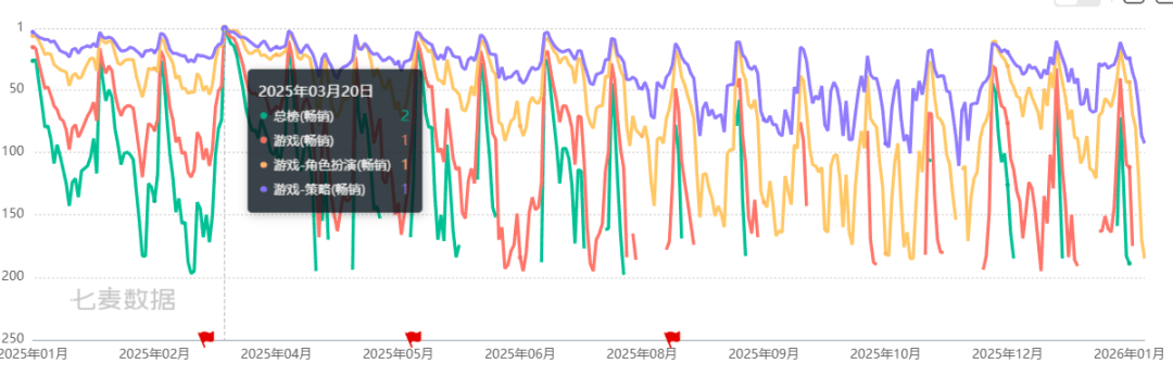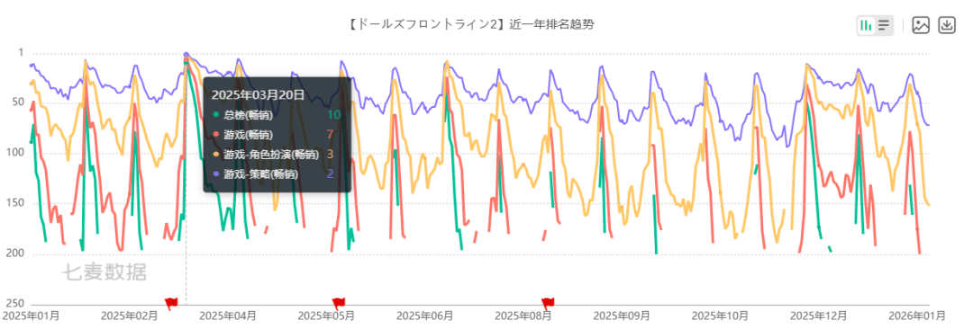 《少前2》25年日韩畅销榜曲线
