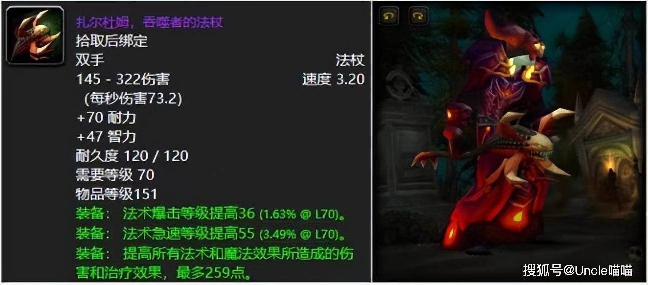 黑暗神殿伊利丹的狗杖虽然说不是法系DPS版本最强的武器,但是他就如同地球时代黑翼之巢的暗影烈焰法杖一般无可取代,在太阳井没有开放之前他堪称最强,就算是太阳井高地开放后,他依旧是一般玩家最想要拿到的极品法杖了,绿字面板完美爆击与急速加持,真的不挑职业,必须为之狂热!