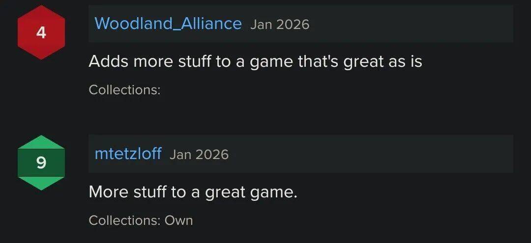 其次,根据底下其他玩家的留言,这两条评论本质上在讨论的是同一件事,就是通过引入扩展提供更多模组的设计是否更好?以及,这是否会让玩家觉得更舒服?