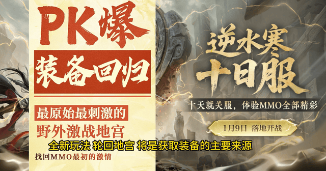 其实这一切都是十日服的“官方套路”——所谓十日服,核心就是“浓缩十天,爽到极致”。官方直接把传统MMO冗长的养成系统全砍了,改成了“爆装即提升”的极简模式,全身就六件制式装备,在地宫里刷怪、PK就能直接爆高阶装备……