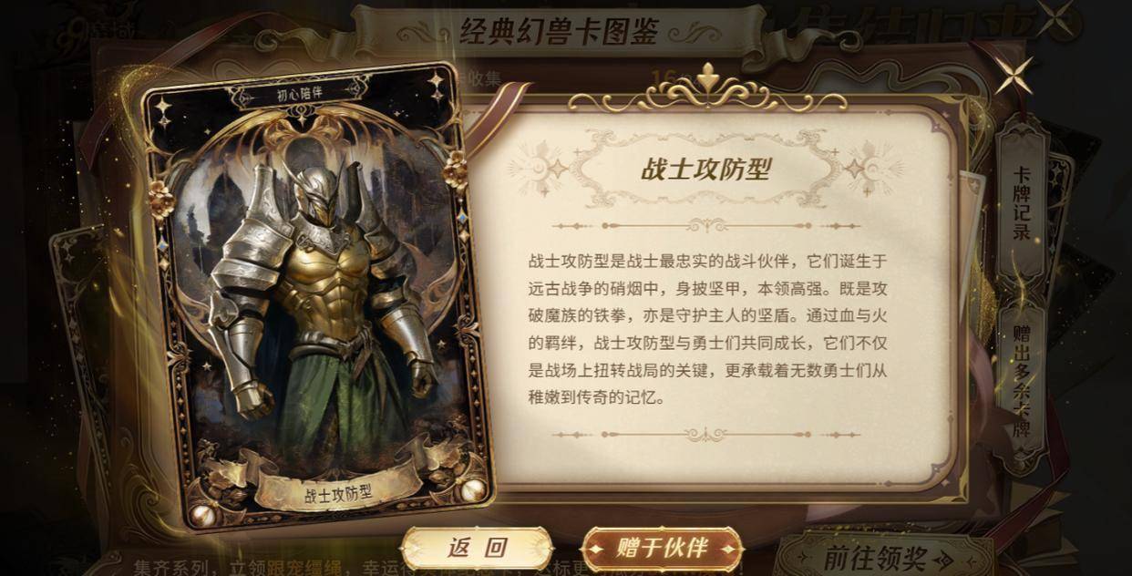官方这回太懂了,直接把咱们记忆里的老战友——比如战士攻防型、法师攻防型、吉祥嘟嘟这些经典幻兽,做成了精美的卡牌。每天登录游戏就能收集,点开图鉴里的卡牌,还能看到对应的设定描述,瞬间就把人拉回当年带着它们刷怪、PK的热血岁月。