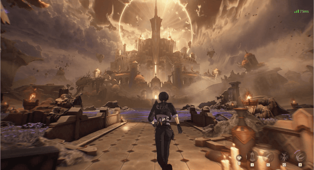 建筑高耸入云,充满浮空的岛屿与悬垂的圣殿,城市结构本身就是一个垂直的神学隐喻。不断纵向构建的设计恰如西方宗教概念中,距离天空越近,便离神明越近的概念。而在这种注重纵向深度的地图上,“翱翔”自然而然成为了探索核心。展开光翼,掠过教堂尖顶,穿梭于云雾与悬空回廊之间,这种脱离大地的飞行体验,本身就在强化一种超越性的、充满宗教神话感的视角。