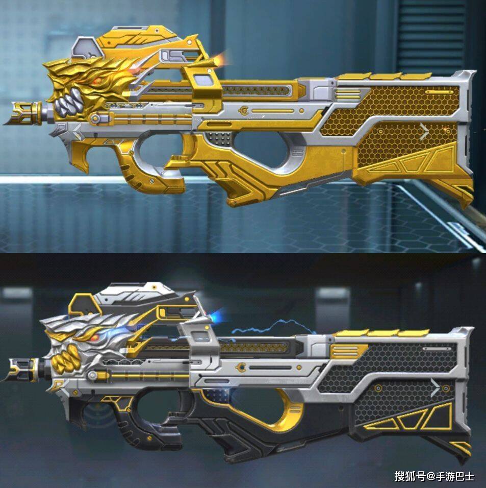 枪身中段采用蜂窝状镂空纹理,搭配暗金机械构件,银灰底色上的纹路如同电流奔涌,枪托与握把的暗金棱线呼应兽首设计,整体风格比王者版本更显冷冽锐利,静置时兽瞳蓝光轻闪,透着未加修饰的战场威慑力。
