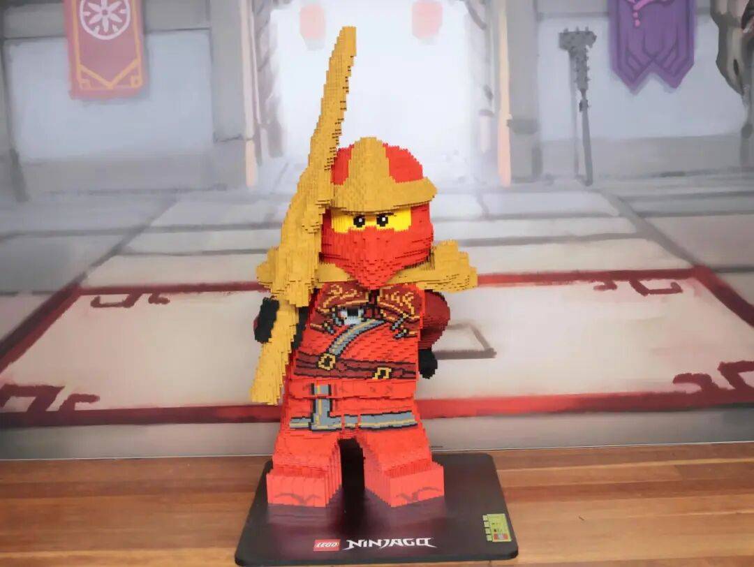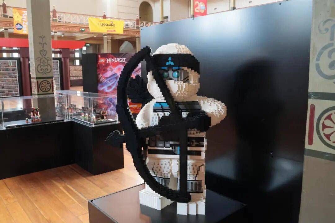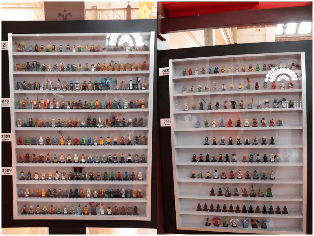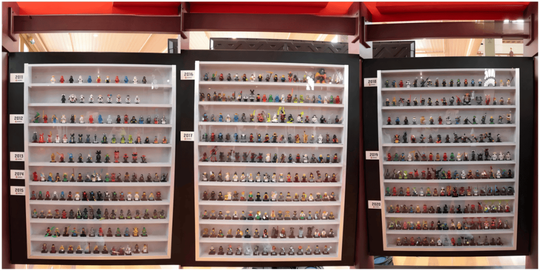展台最具视觉冲击力的装置,是一整面由超过 1000 个乐高幻影忍者人仔组成的展示墙。