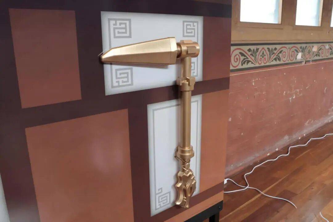 “过去”区域展示了早期幻影忍者动画季的概念设定图,以及等比例尺寸的四把金色武器,对老粉丝来说极具情怀价值。