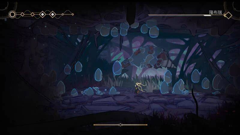 打开《秘奥:秘宇奥忆》前,我本以为它和诸多 2D 银河城一样,探索和“跳跳乐”会是篇幅更大的内容。实际上第一个区域就设置了多种小怪和 2 个 BOSS,直接把战斗作为核心玩法摆上台前,而且“抓钩”般的发丝机制也参与到战斗当中,算是给了个小小的“下马威”。
