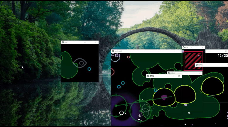 比如有一个毛毛虫boss和史莱姆boss,毛毛虫自己的每一小节身体在玩家窗口外时都会生成一个独立窗口,史莱姆分裂的每一个小史莱姆也同样如此。