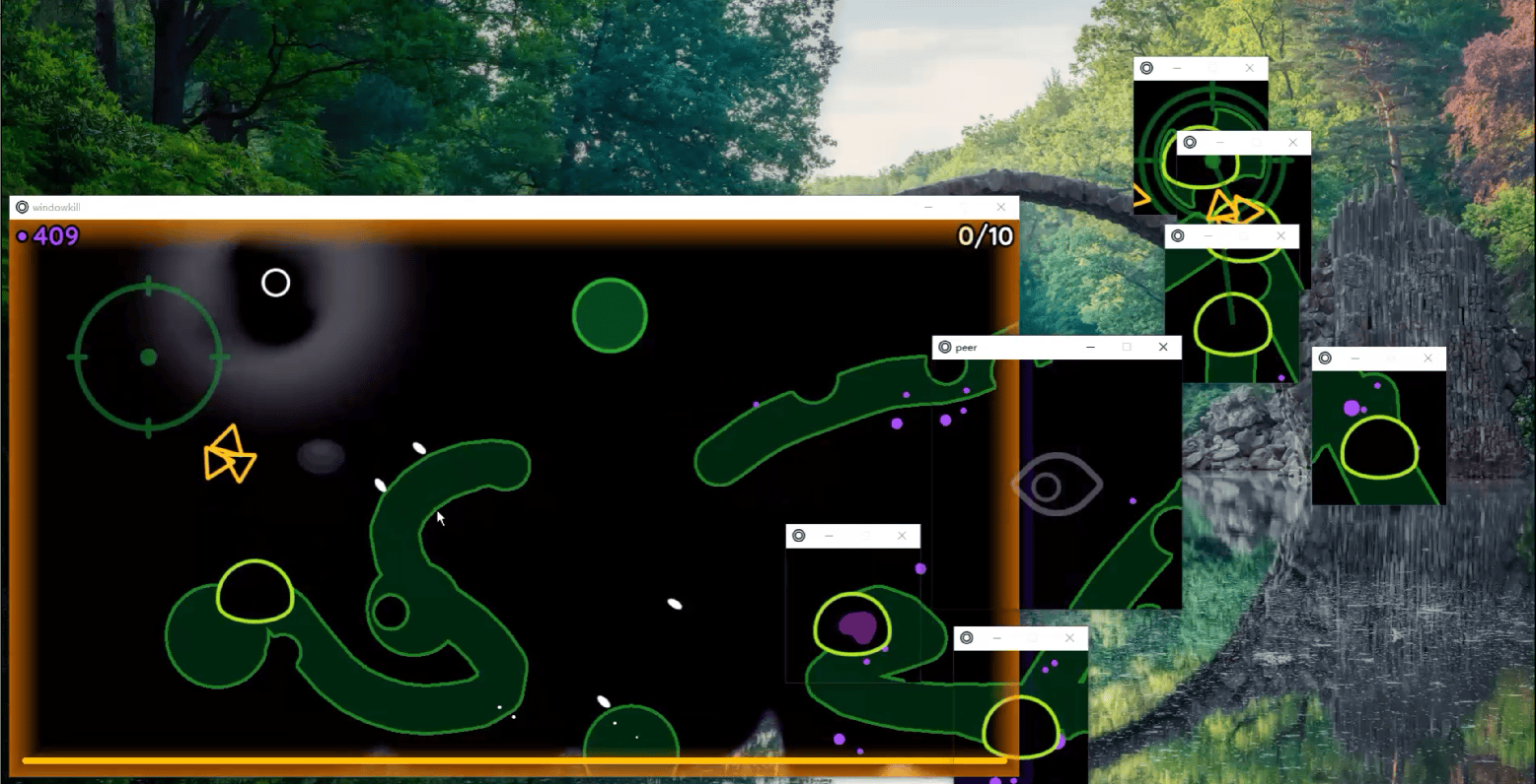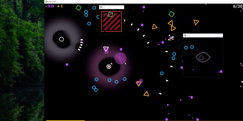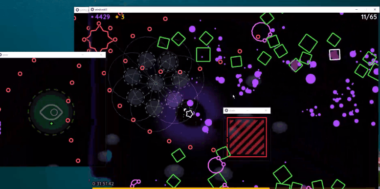 想象一下,你在玩一款难度本就不低的双摇杆弹幕射击游戏,电脑窗口却有了自己的想法。它不再老实地固定在同一个位置,你没办法将它设置全屏,也没办法自由拖动它。在它给你留下的一小块空间里,你能控制它的唯一方式就是朝窗口边缘开枪让他扩大。